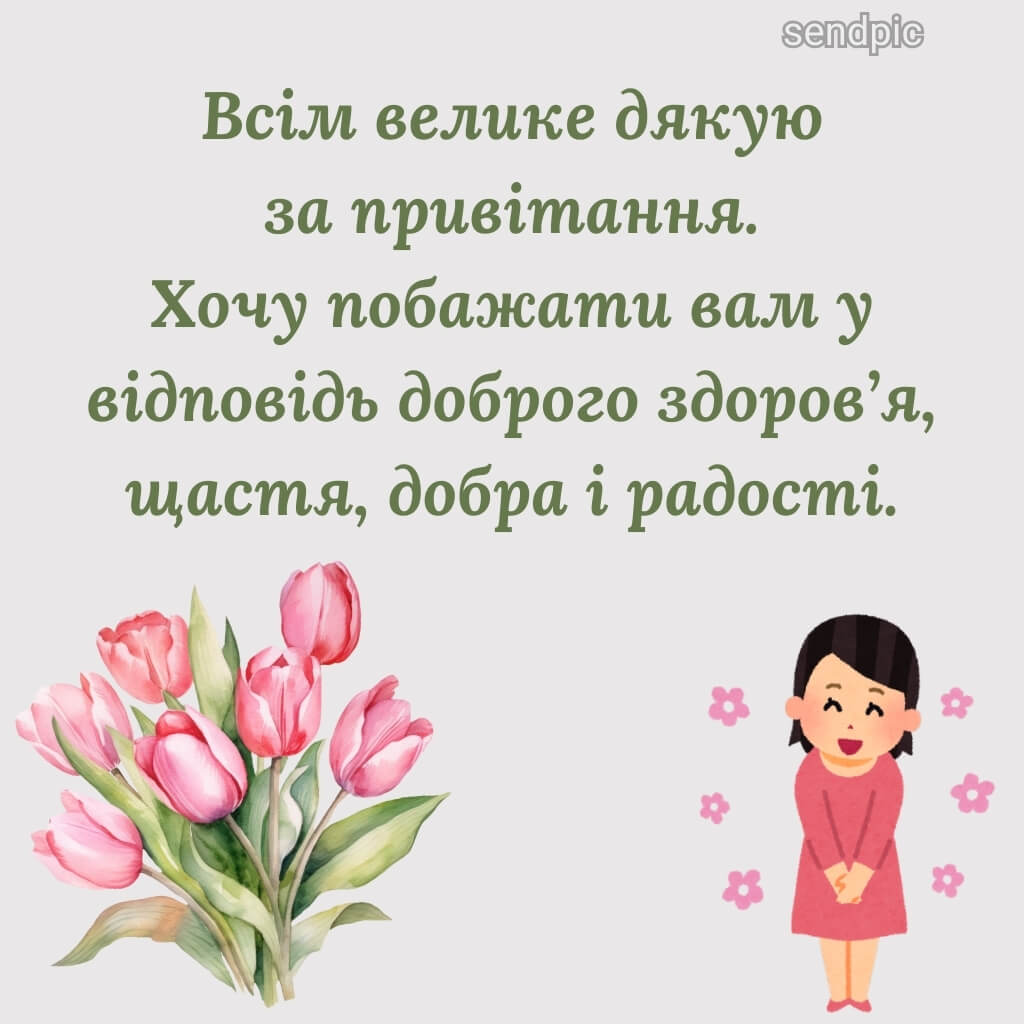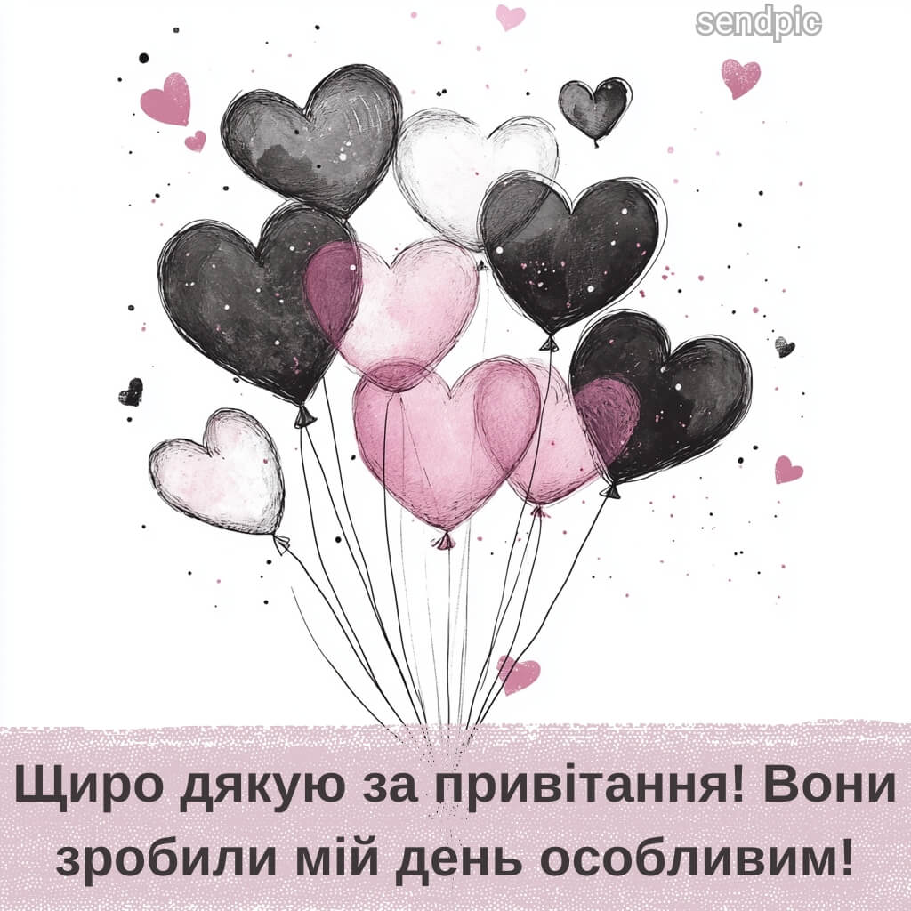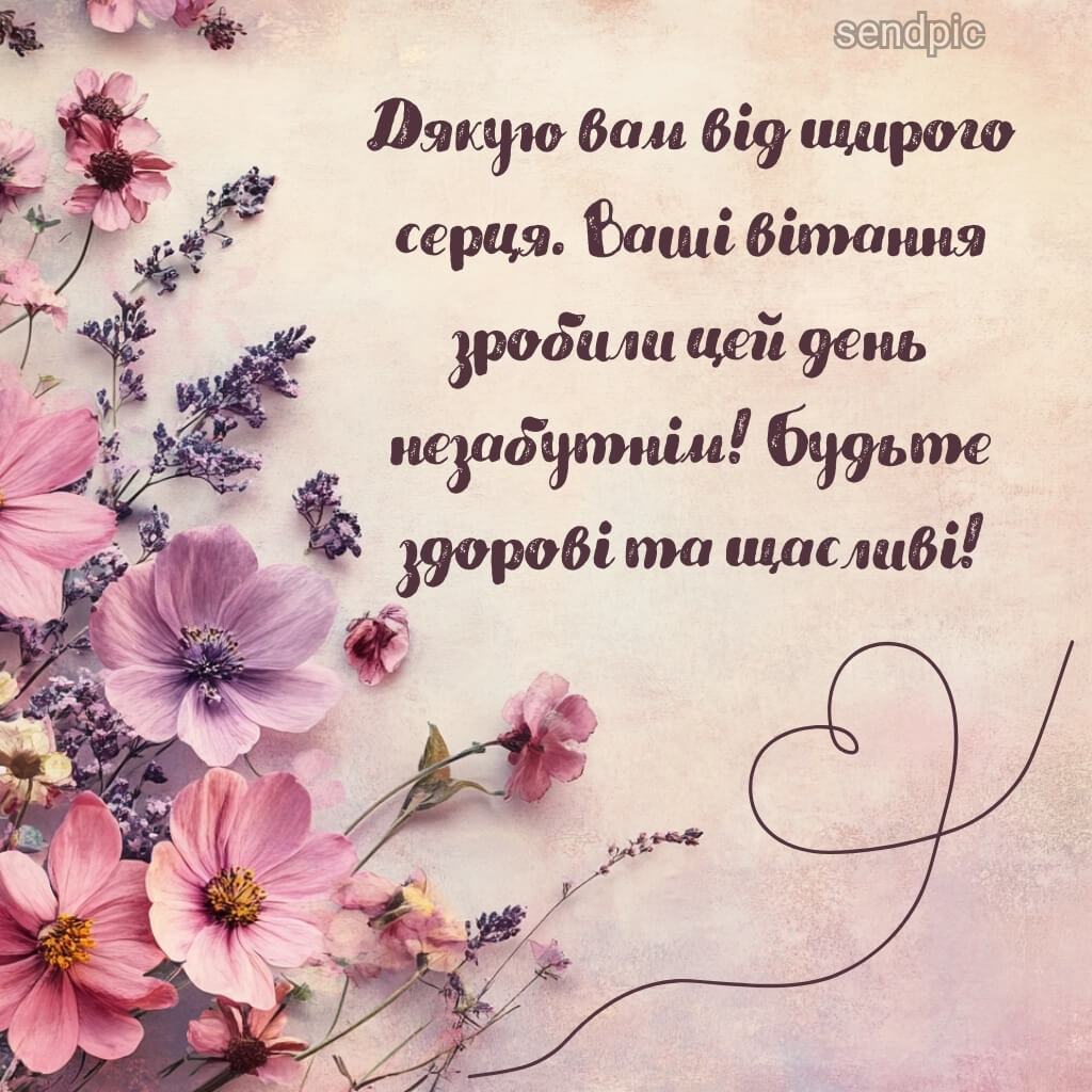 Нові картинки та листівки щиро дякую за привітання українською мовою (80+) Гарні листівки з вдячністю за привітання та щирими побажаннями простий і теплий спосіб сказати “Дякую” тим, хто приділив вам увагу в такий особливий день. поділитися