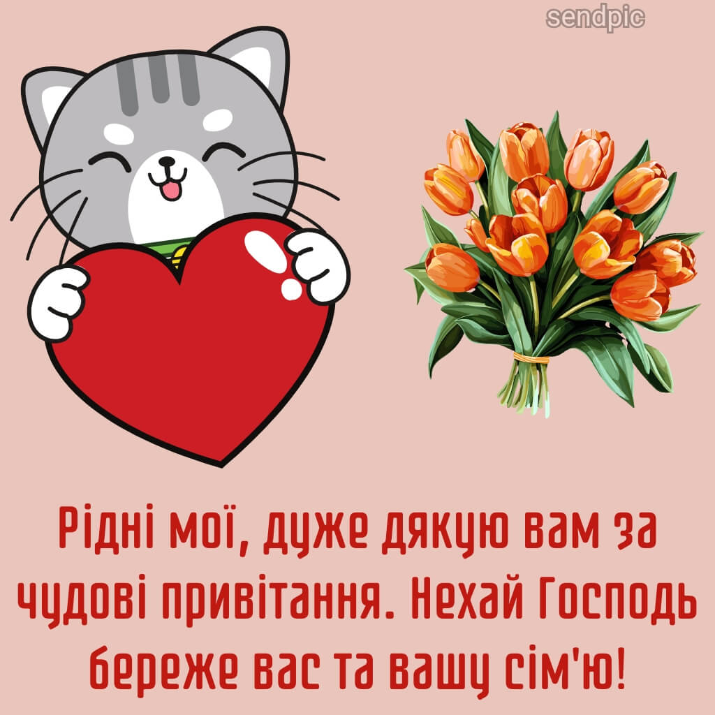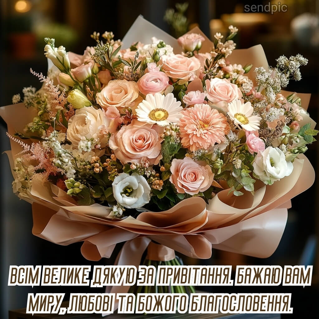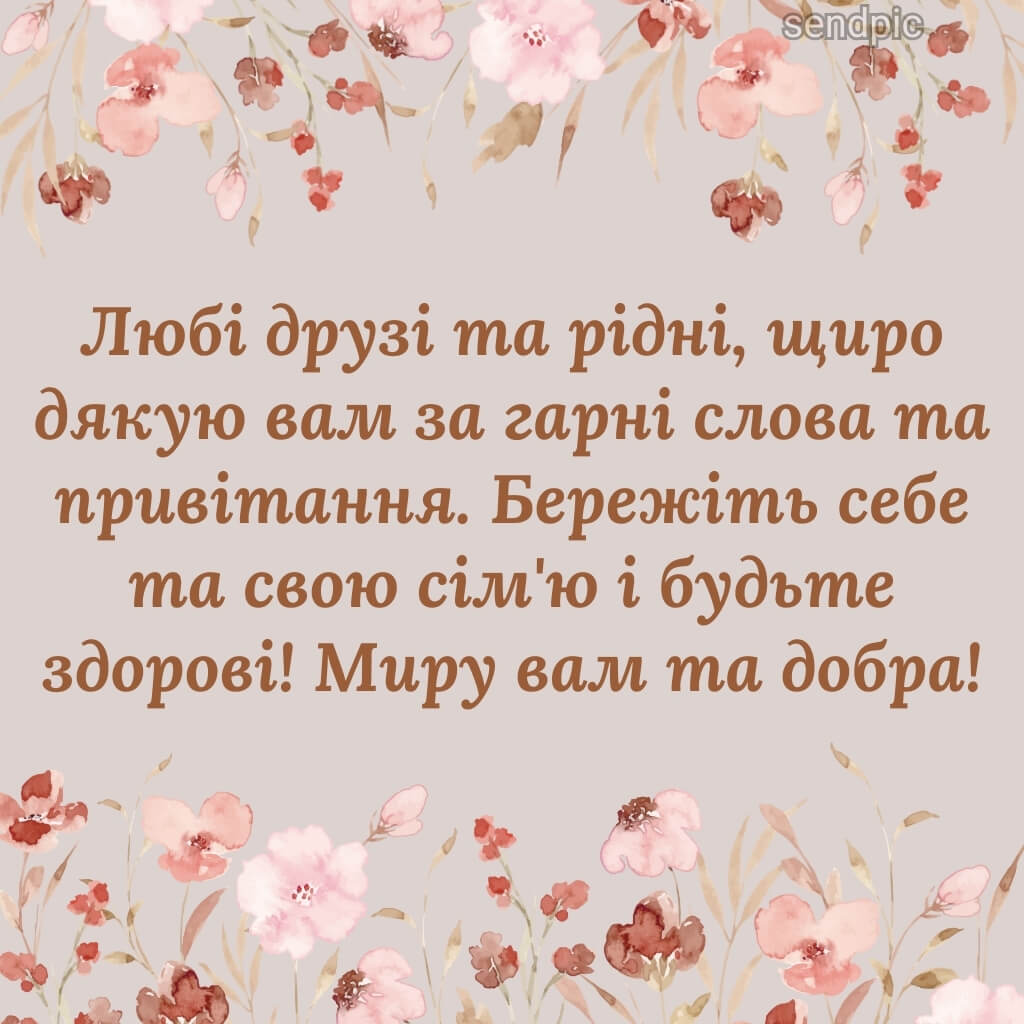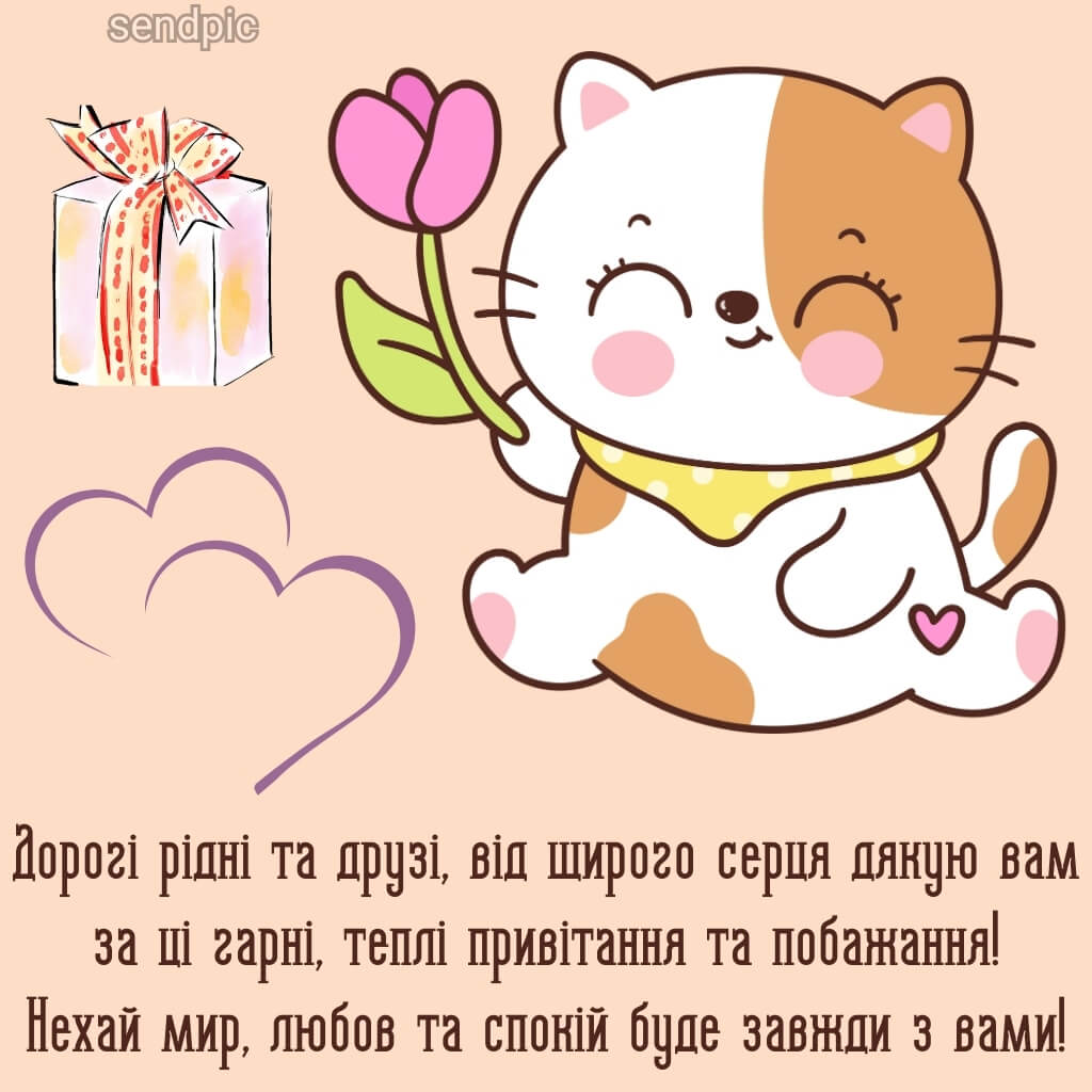 Нові картинки та листівки щиро дякую за привітання українською мовою (80+) Гарні листівки з вдячністю за привітання та щирими побажаннями простий і теплий спосіб сказати “Дякую” тим, хто приділив вам увагу в такий особливий день. поділитися