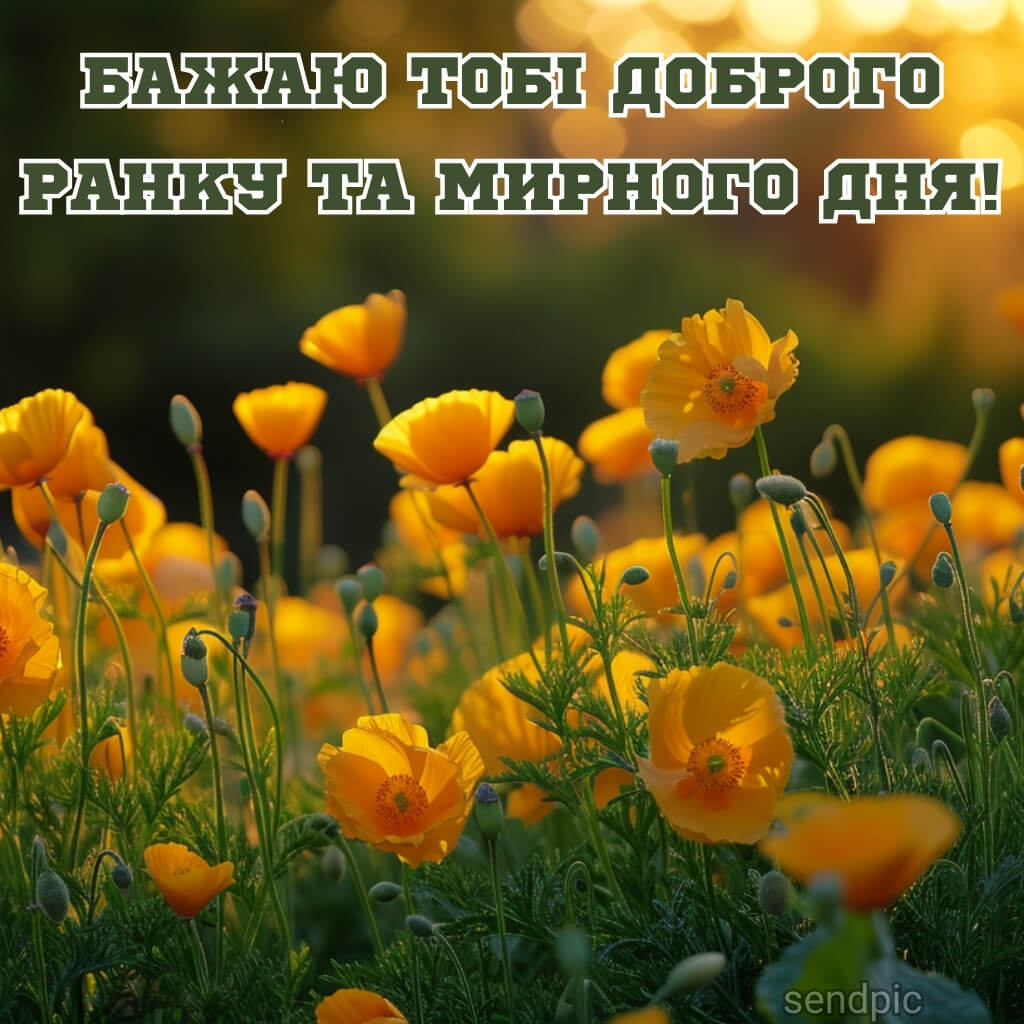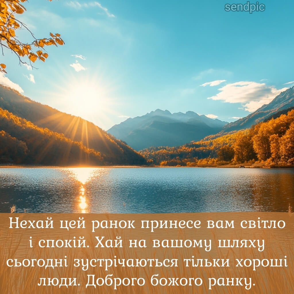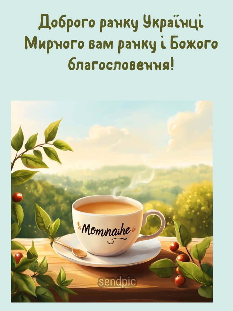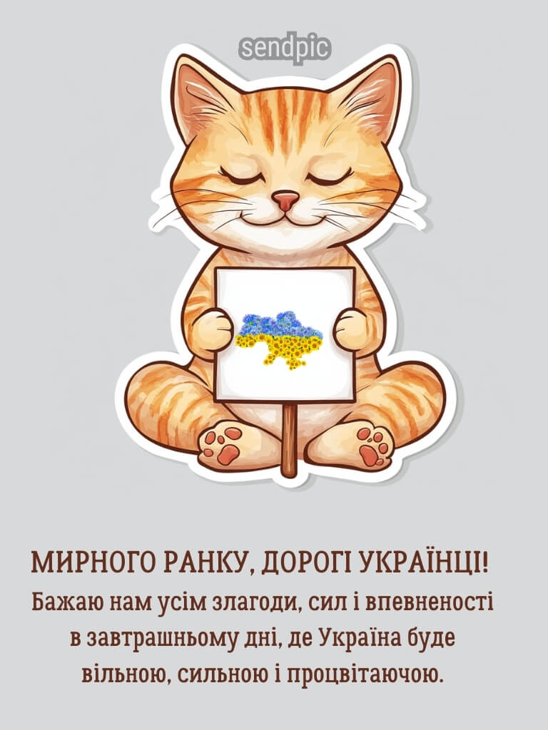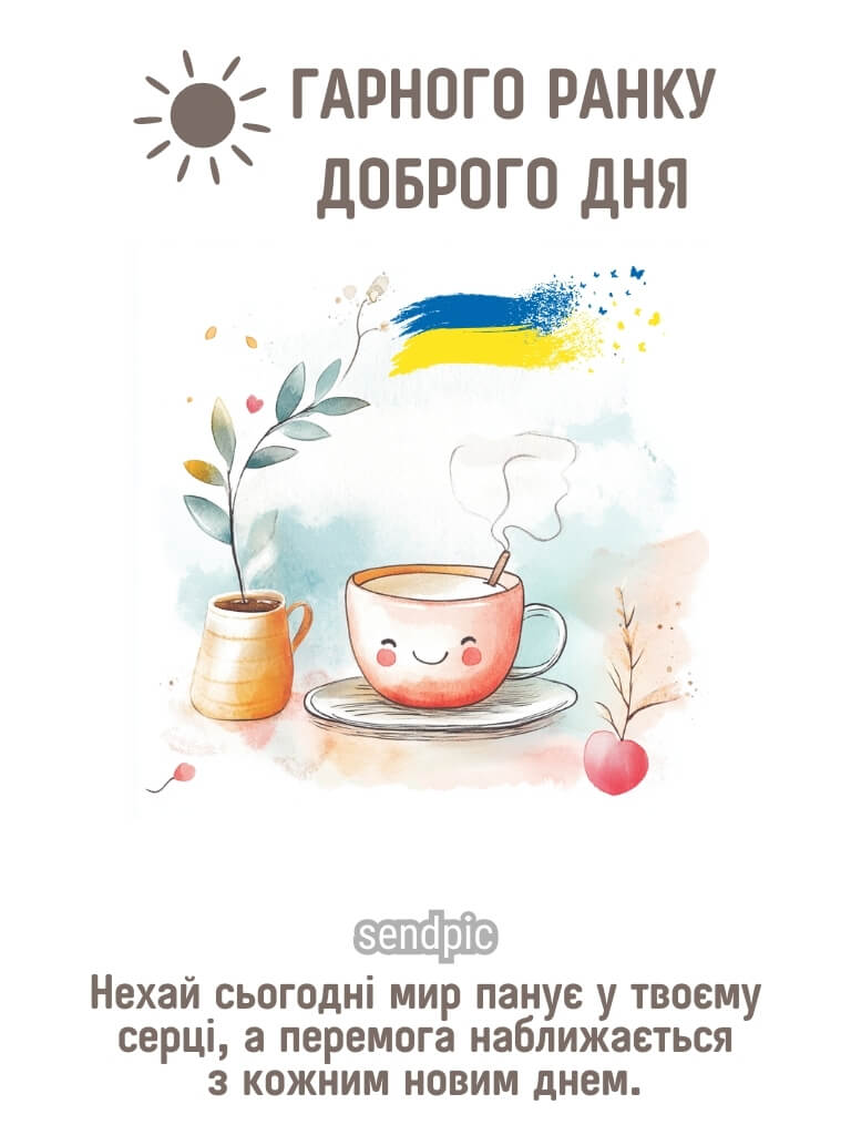 Мирного ранку, дорогі українці! Нехай сьогоднішній день буде сповнений щастя, спокою і радості, а кожна мить наближає нас до миру на нашій землі.